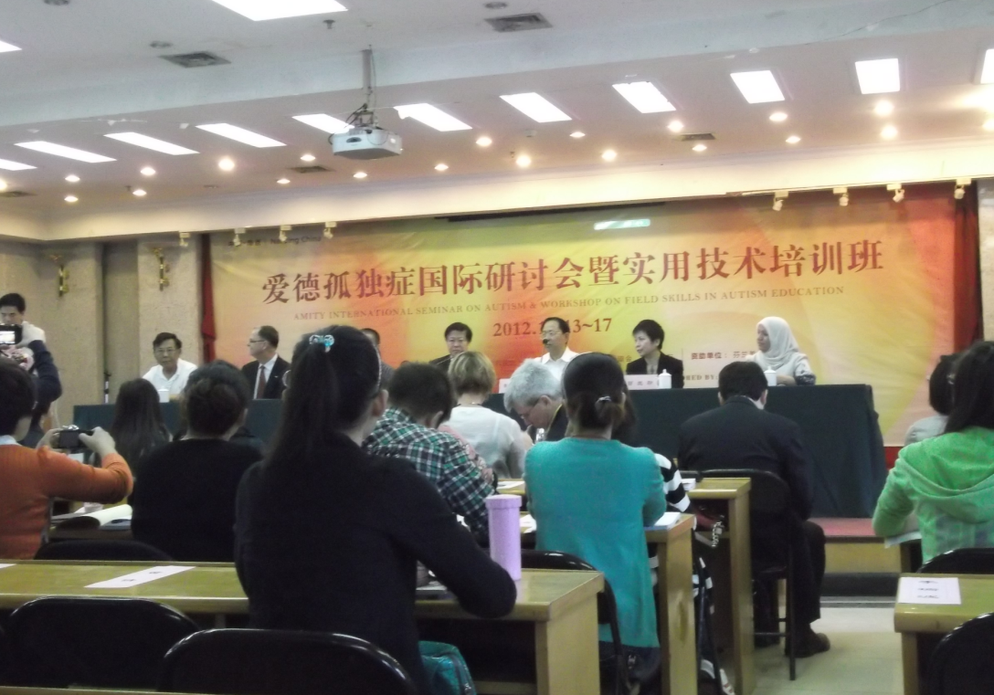 2012年10月19-21日,浙江光盐爱心基金会项目部组织浙江省爱自闭儿童康复中心2位教师参加了由浙江省第七人民医院和浙江省心理卫生协会儿童心理卫生专业委员会共同主办的“儿童发育行为障碍诊疗新进展”培训班和“儿童语言发展迟缓训练技巧及策略工作坊”,培训班由医生和教师分享了最新的儿童发育行为诊疗检测和干预方法;工作坊由香港协康会高级语言治疗师主讲,介绍了儿童言语发展的理论以及干预策略。
