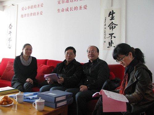 日浙江圣爱自闭儿童康复中心张大鹏理事长、浙江光盐爱心基金会项目督导沈琼老师共同到浙江圣爱自闭儿童康复中心视察。他们参观了浙江圣爱的场地,了解了浙江圣爱的教学课程、学生生源、师资力量等等,同时也肯定了浙江圣爱教职工的努力。张大鹏理事长和沈琼老师对浙江圣爱提出了新的希望和要求:希望浙江圣爱自闭儿童康复中心的课程能过更加有特色,体制更加完善。同时也相信浙江圣爱在大家的努力下会走得更远。